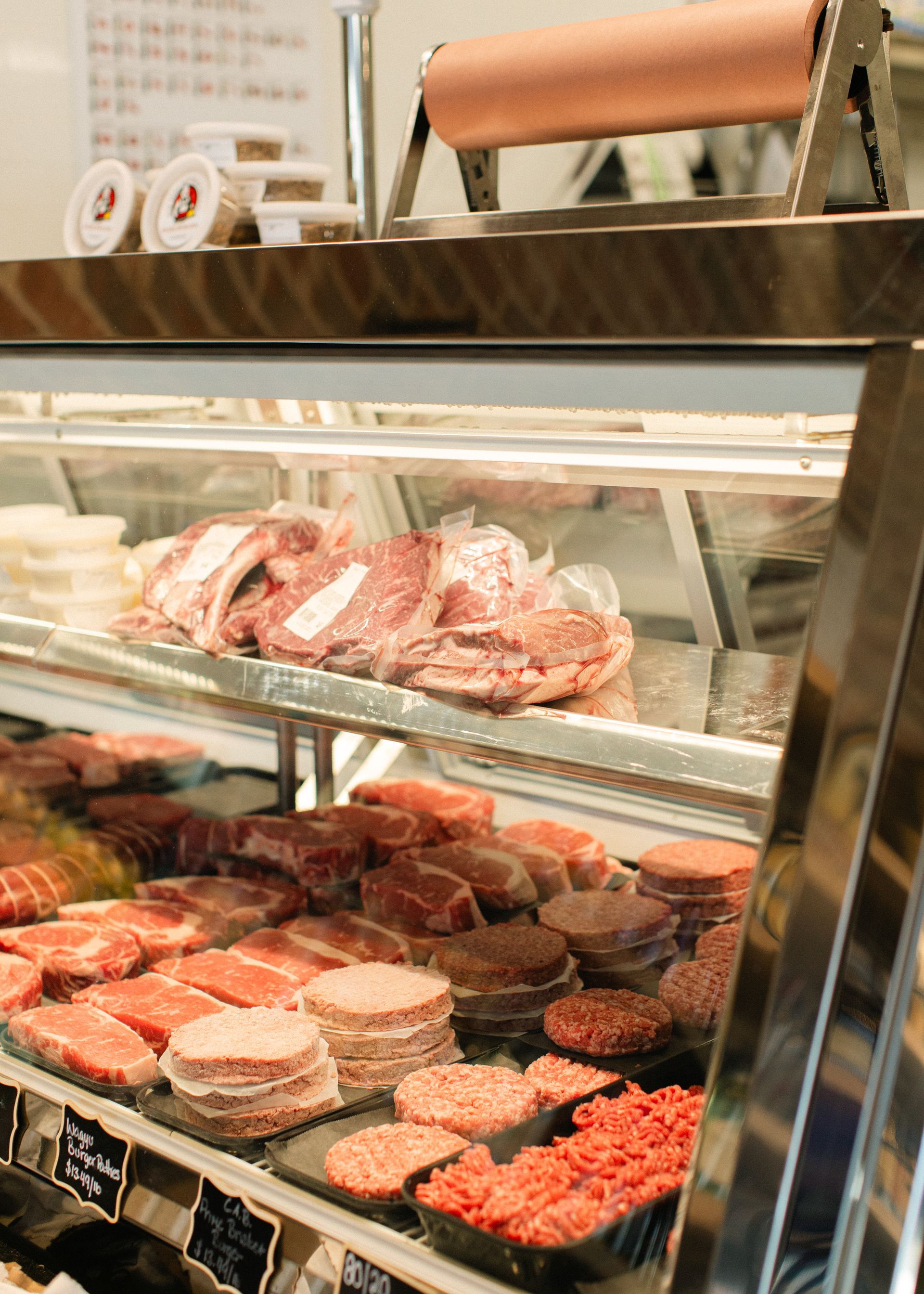Our shop sells Certified Angus Beef® High Choice and Prime. It’s the only beef certified to always be juicy and delicious, brought to you by family farmers and ranchers. We also carry Heritage Breed Pork along with Natural, Pastured Raised, Hormone/Antibiotic Free Chickens. We make all our sausages in-house and have a rotating selection of fresh seafood available, including house-made crab cakes!